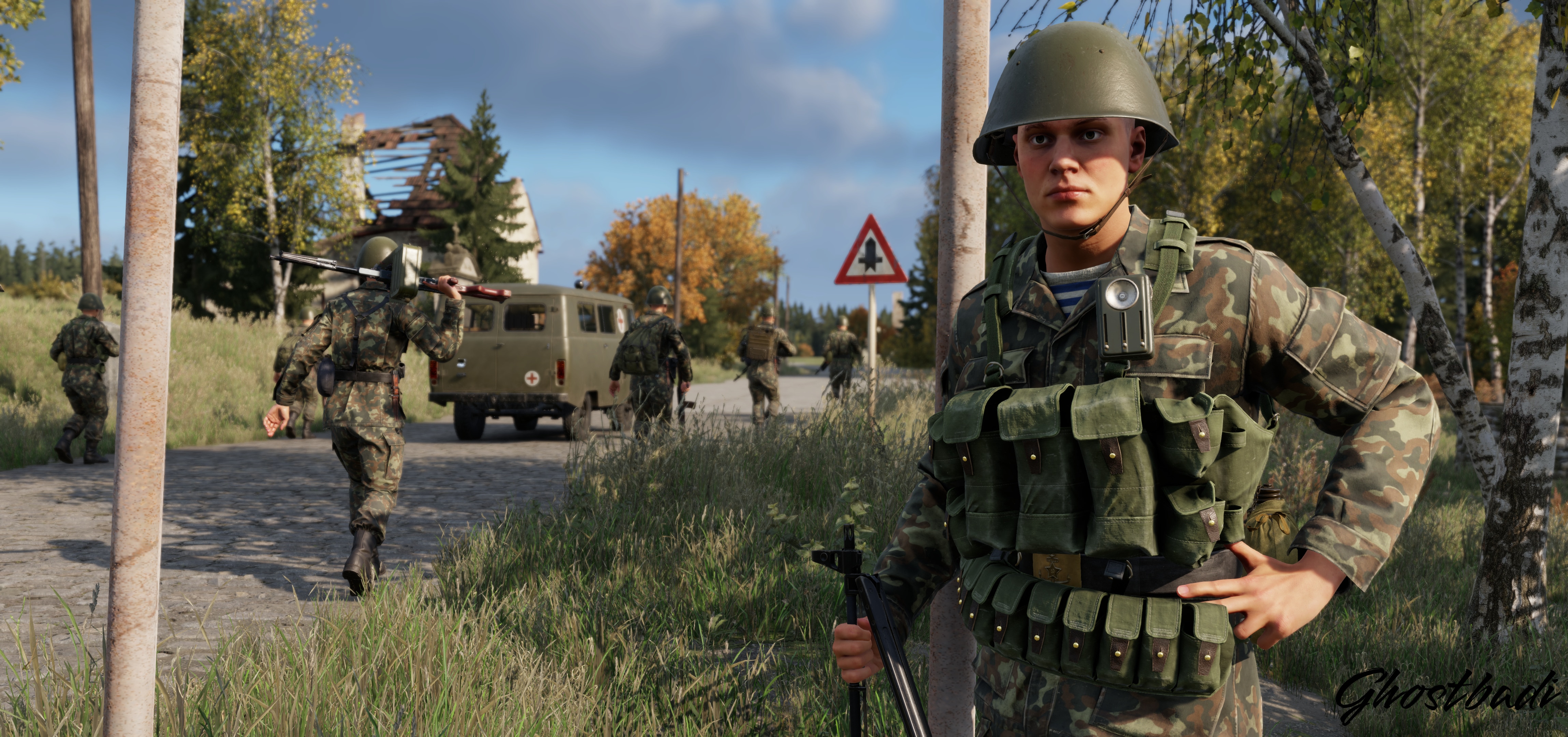 Soviet forces are on the move, with troops heading back from the front after hours of fighting. We really like the story being told here, especially in that quiet moment where one soldier pauses to take it all in before moving on again. A beautifully composed shot by Ghostbadi that speaks volumes.