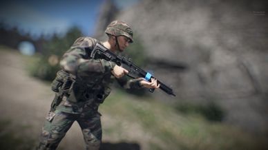 An overly modern looking AR-15. It was textured in SP (though the texture is temporary). Comes with a magazine model and two iron sights, aswell as a grip. All can be detached/attached. Also comes with a full-auto firemode. You can find this in the blufor arsenal.