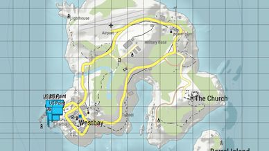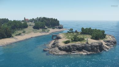 Roughly 1KM2 Island featuring a village, airport, military base and much more.