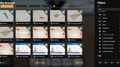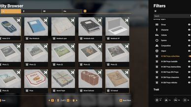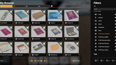 - blue notebook, blue notebook open, blue notebook stack, camera, carkeys, *******, documents, old gameconsole, handheld game, gold, jackolantern, guitar, mobile, money, mortar box, musicsheet, musicsheet open, nokia 3310, laptop, photos (1-6), BEER!, pizza, secret papers, suitcase, us manual, ussr manual, usb, weaponcase etc...
