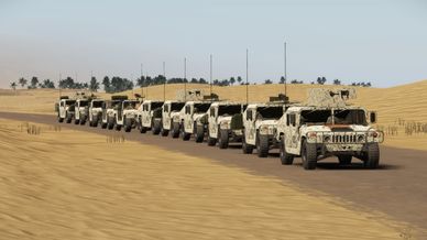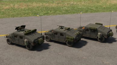Custom Humvees - green and tan, with variations. Conflict Compatible