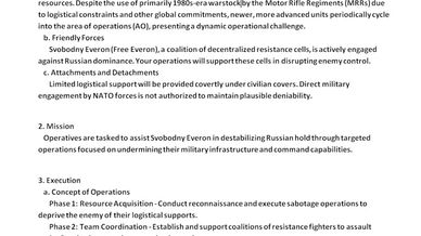 Operatives are tasked to assist Svobodny Everon in destabilizing Russian hold through targeted operations focused on undermining their military infrastructure and command capabilities.