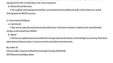 • All supplies and equipment will be unmarked and should blend with civilian items to avoid linking back to NATO sources.