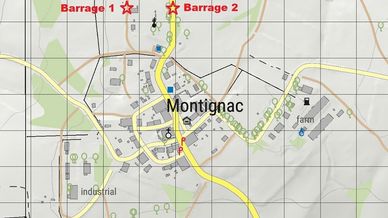 Nos informateurs locaux reportent que la section d’assaut a installé son QG dans l’église au centre de MONTIGNAC. 3 BTRs sont arrivés à MONTIGNAC ce matin. Il va nous falloir prendre de vitesse les troupes du YACKISTAN en libérant MONTIGNAC avant qu’ils ne se décident à lancer l’assaut final.