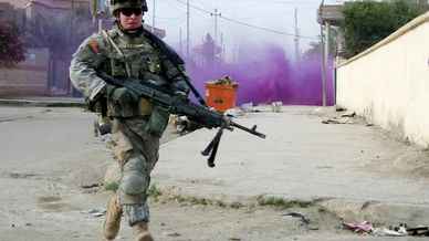 Or to allow a lighter rifleman kit in body armor and with a frontline combat load to rapidly move and shoot as required without being forced to rapid jog to a position with their weapon lowered. Helping CQB effectiveness dramatically as it relies on speed, surprise, and violence of action.