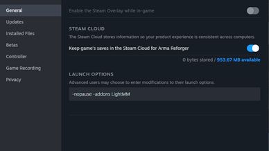WARNING : YOU NEED TO ADD THE LAUNCH OPTION '-addons LightMM' IN STEAM PROPERTIES The mod need to be in the following file directory : C:\Users\YourProfile\Documents\My Games\ArmaReforger\addons