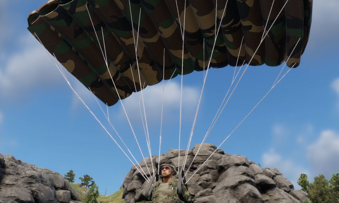 This project adds fully controllable parachutes to Arma Reforger in a way that makes it easy to add new/different ones. It only contains a single type of parachute at the moment, which is a glider, but the dynamic values give server owners the freedom to create/modify parachutes to their liking.