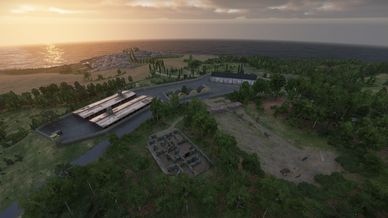 It is a 10x10km (3x6km Island) Terrain featuring Mountainous terrain and some minor changing forresty Areas.