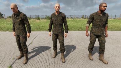 • Vanilla Game: Added custom MARPAT textures to the vanilla US Jacket (uses same pants as above). Removed the belt from the Jackets, and used the inflated model.