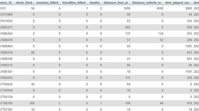 Combat events: kills, deaths, weapon, distance, headshots, teamkills.