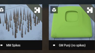 In this mod are two punji pit trap prefabs, one is for map makers (it requires a hole in the terrain mesh to function correctly) and the other is GM spawnable (this one remains on top of the terrain) both blend into the surrounding terrain EMAT.