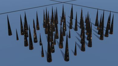 Two working punji pit traps made using the barbed wire damage mechanic.