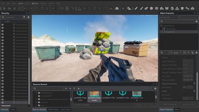 Réalisation des murs de séparation, des textures et des immeubles : actuellement, les murs de frontière sont texturés, les maisons ont leurs collisions (sauf l’immeuble de 16 étages). Aucun bâtiment n’est encore posé, mais si vous téléchargez la map, vous pourrez voir son avancement.