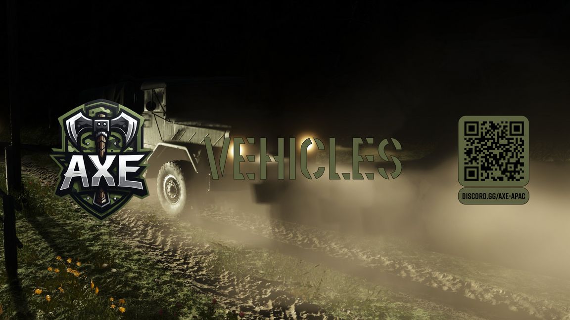 SummaryVehicles config for AXE serversDescriptionJoin us! discord.gg/axe-apacLicenseArma Public License (APL)