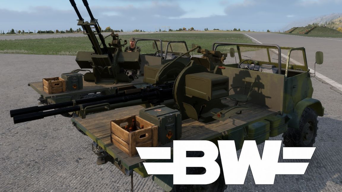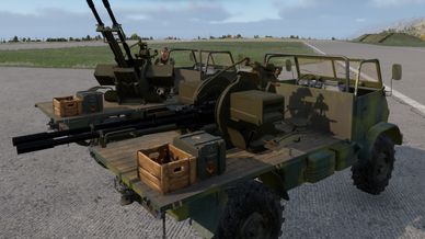 Imports Bacon's ZU-23 into Bushwar's US faction arsenals, and includes a new variant of the Unimog w/ AA gun mounted on rear. All credit for the guns, original configs, and scripts goes to Bacon. Published with permission and follows Bacon's original license guidance.