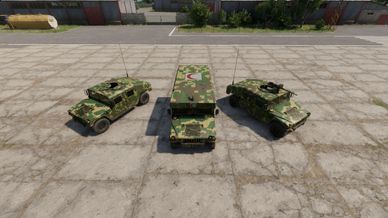 A retexture of vanilla vehicles to TDM Digital colour scheme. Currently available vehicles: 1. HMMWV unarmed 2. HMMWV M2HB 3. HMMWV Ambulance 4. LAV 25
