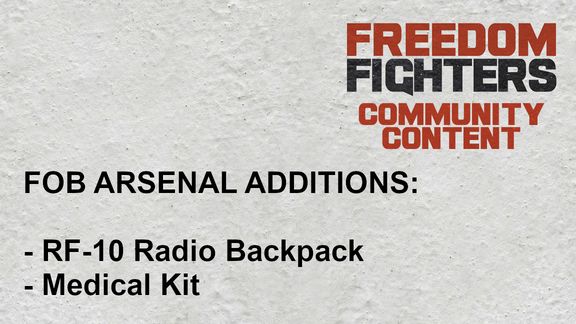 Adds RF-10 (FIA radio backpack) to the equipment arsenal. Adds medical kits to the shops/medical tent.