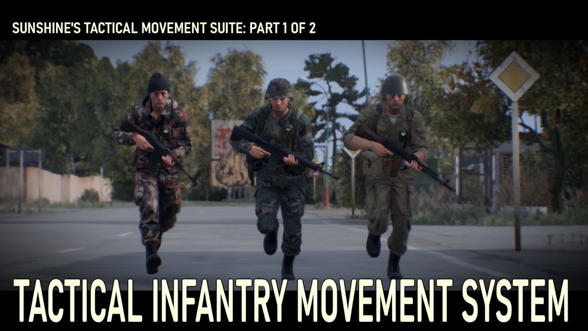 To create a meaningful tactical infantry combat experience, this broad infantry movement mod alters various character locomotive traits. It goes beyond just movement speeds but also affects interactions with terrain, objects, slopes, leaning speeds, inertia to create overall much more satisfying, meaningful infantry gameplay.