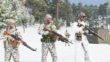 Applies various camo items to all AI unit variations for the FIA, US and USSR. This means groups that are spawned that refer specifically to the vanilla character entities will spawn in with appropriate winter camouflage. I don't know anything about period-accurate camouflage and wasn't able to find a winter PSGT vest that was visually consistent, so the US have a slight mix to their outfits.