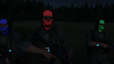A Novco Creation. this mod adds 3 new Balaclava masks that have a White Skull, they also glow in the dark to a degree. only 3 available variants, Green, Red, Blue.