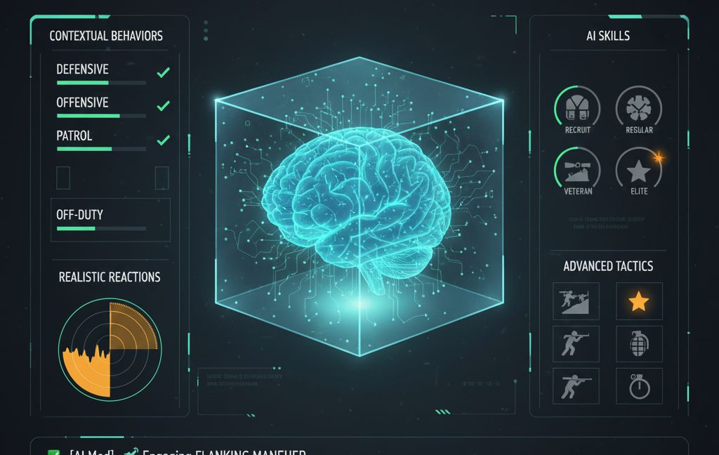 • 4 AI contexts: Defensive, Offensive, Patrol, Off-Duty