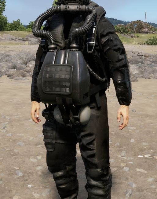 This mod adds a dive suit. The oxygen supply is thirty minutes. The only thing that adds oxygen is the rebreather so make sure you have it. Oxygen on the rebreather resets when its taken off.