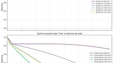 ACFT Standards: Strictly tuned to US Army Combat Fitness Test standards. A fit soldier (1.0) is calibrated to complete the 2-mile run in approximately 15:27.