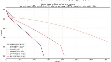 Wind & Rain: Aerodynamic drag based on live wind direction; rain intensity affects breathing resistance. v3.13: Temperature simulation and wind compensation further refine consumption calculations.