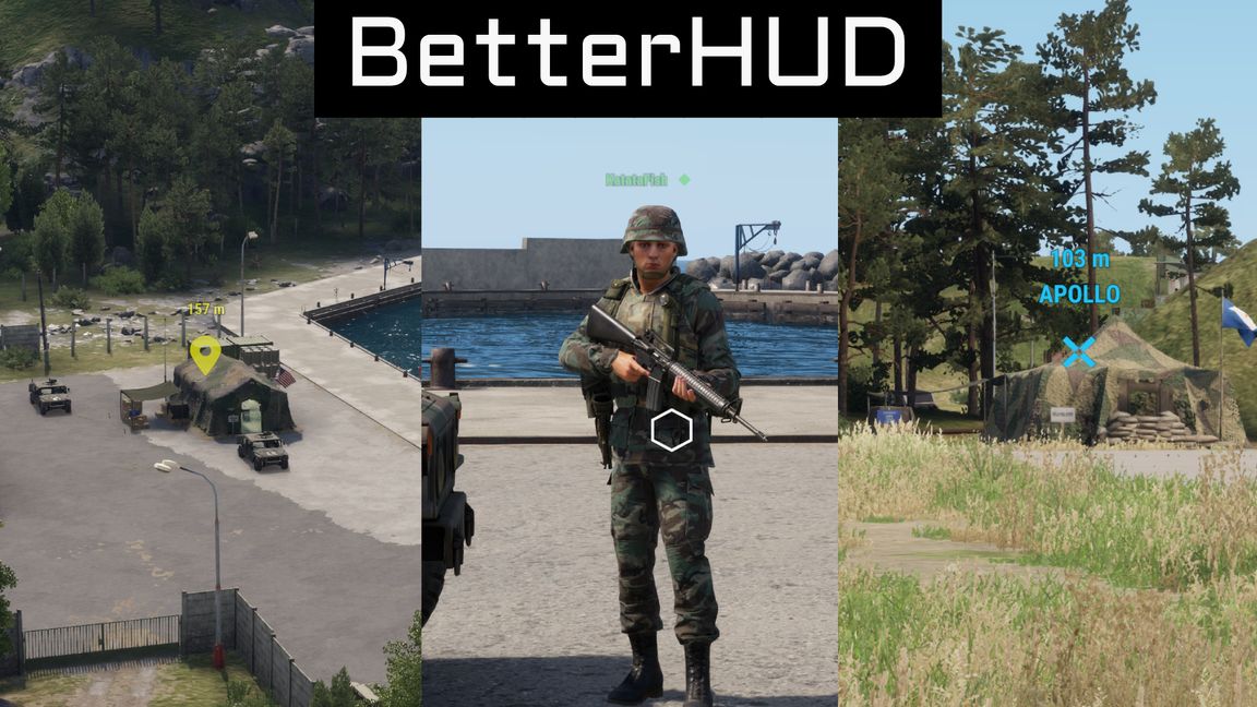BetterHUD improves your HUD with map-placed waypoints + distance, assigned tasks in Conflict/objective modes, and squad members shown in the HUD for better coordination and awareness.