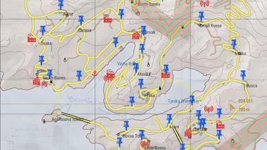 Many towns, military bases, factories, radio towers and radar stations.