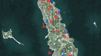 Many towns, military bases, factories, radio towers and radar stations.