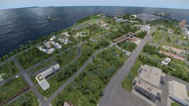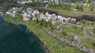 Inland Areas: As you move away from the city, terrain opens into hills, roads, and scattered structures, allowing for mechanized movement and longer engagements.