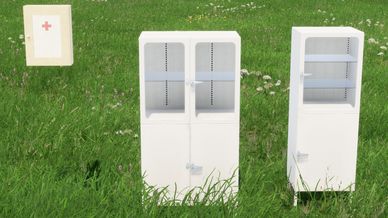 Adds functionality to the ingame First Aid Cabinets and Medical Cabinets found in many of the buildings within the vanilla game.