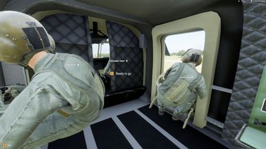 UH-60: Open the doors before boarding the chopper, sit in middle seats, look at pilot to trigger Ready to Go.