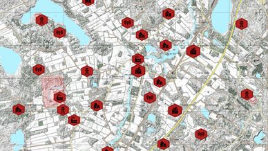 4 Cities, 17 towns, 11 military bases, 7 factories, 7 radio towers and 3 radar stations.