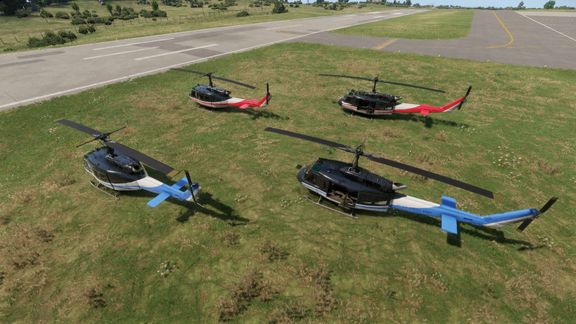 Red and blue UH-1 helicopter variants for USSR and US factions.