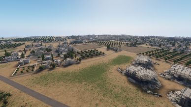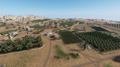 Map based on syrian envivroment , with a city in the middle and surrounding hills with small forest , alot of olive fields and alot of cover.