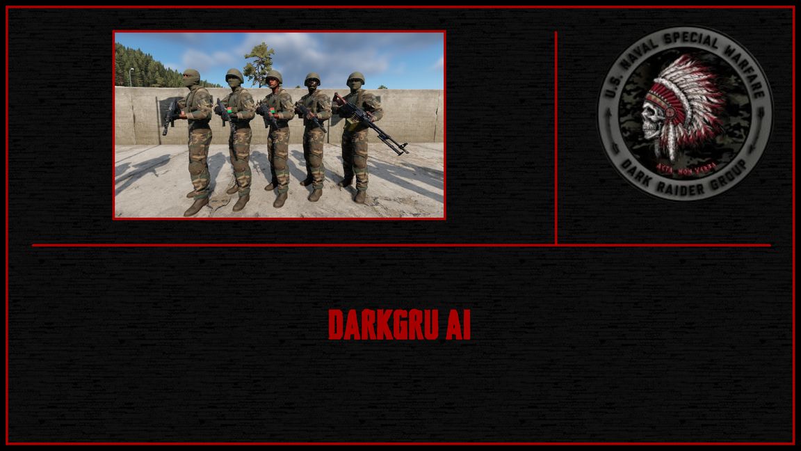 Adds custom AI characters and groups for the DarkGru Servers. Adds Admin Referee 5 Custom Civilians 6 VEPR Riflemen 1 VEPR Machine Gunner Expect to see more in the upcoming future