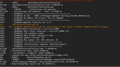 • 20+ command types: movement orders, spawns, weather control, sound, visual effects, objectives