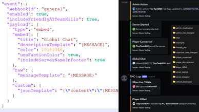 - Per-event JSON config files with payload mode support (embed, raw, custom_json)